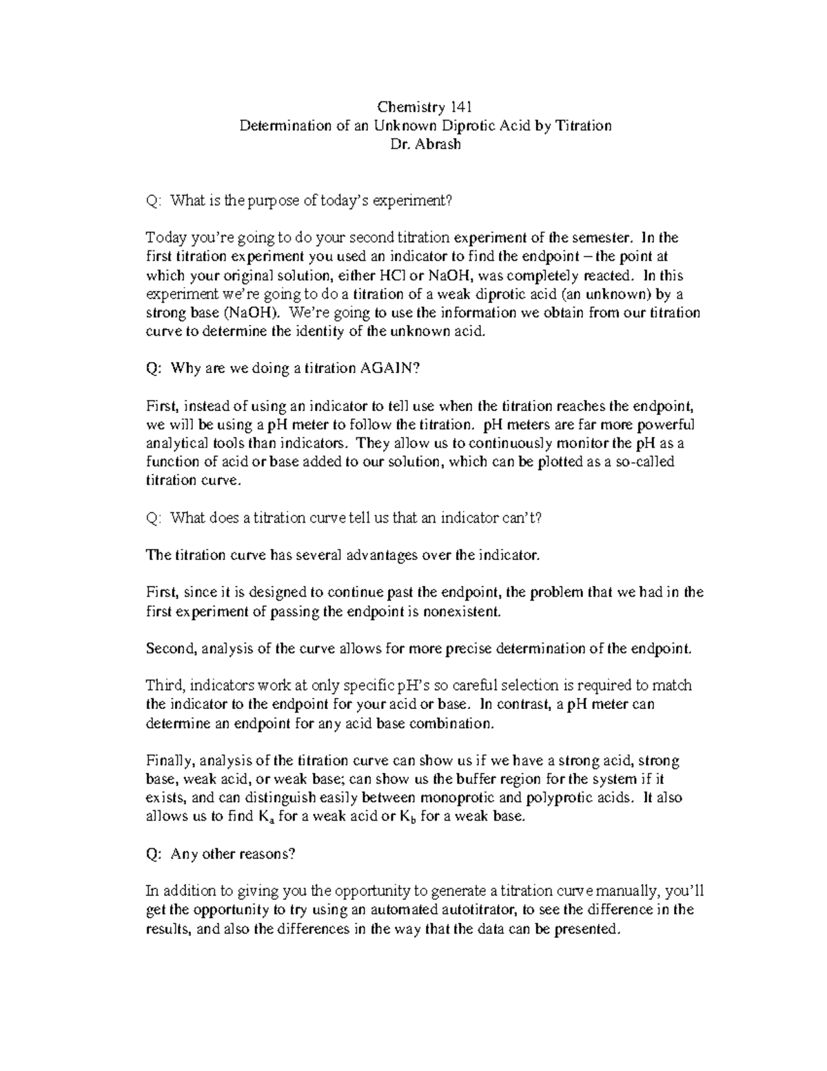 Chem 141 p Ka p Kb Lab Lecture Notes - Chemistry 141 Determination of ...