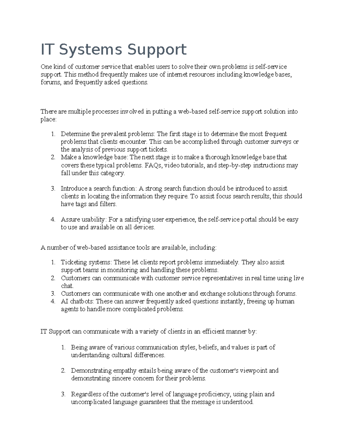 IT Systems Support KB - Lab Report - IT Systems Support One kind of ...
