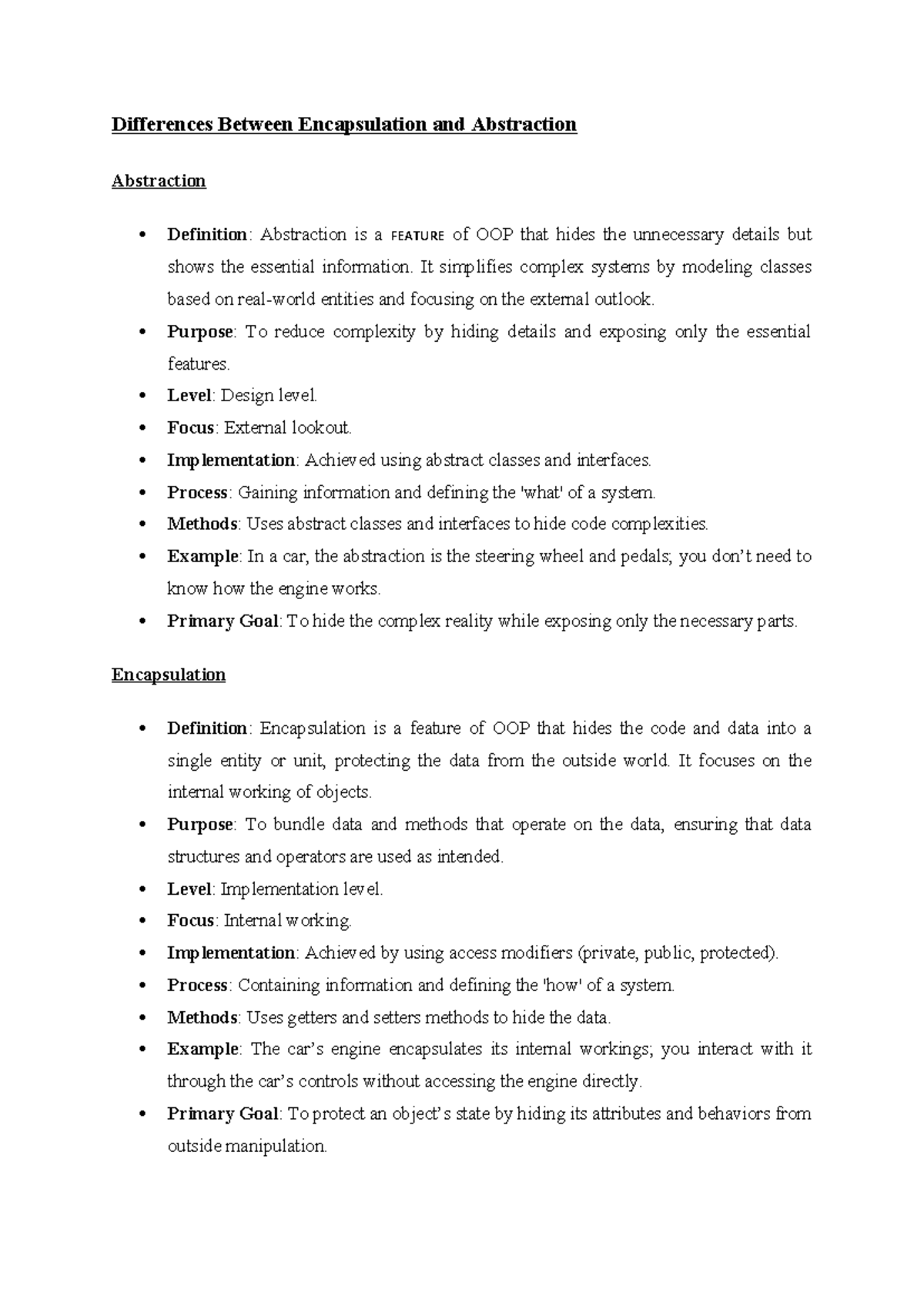 Imp notes - Differences Between Encapsulation and Abstraction ...
