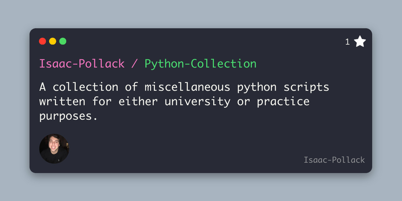 GitHub - Isaac-Pollack/Python-Collection: A collection of miscellaneous ...