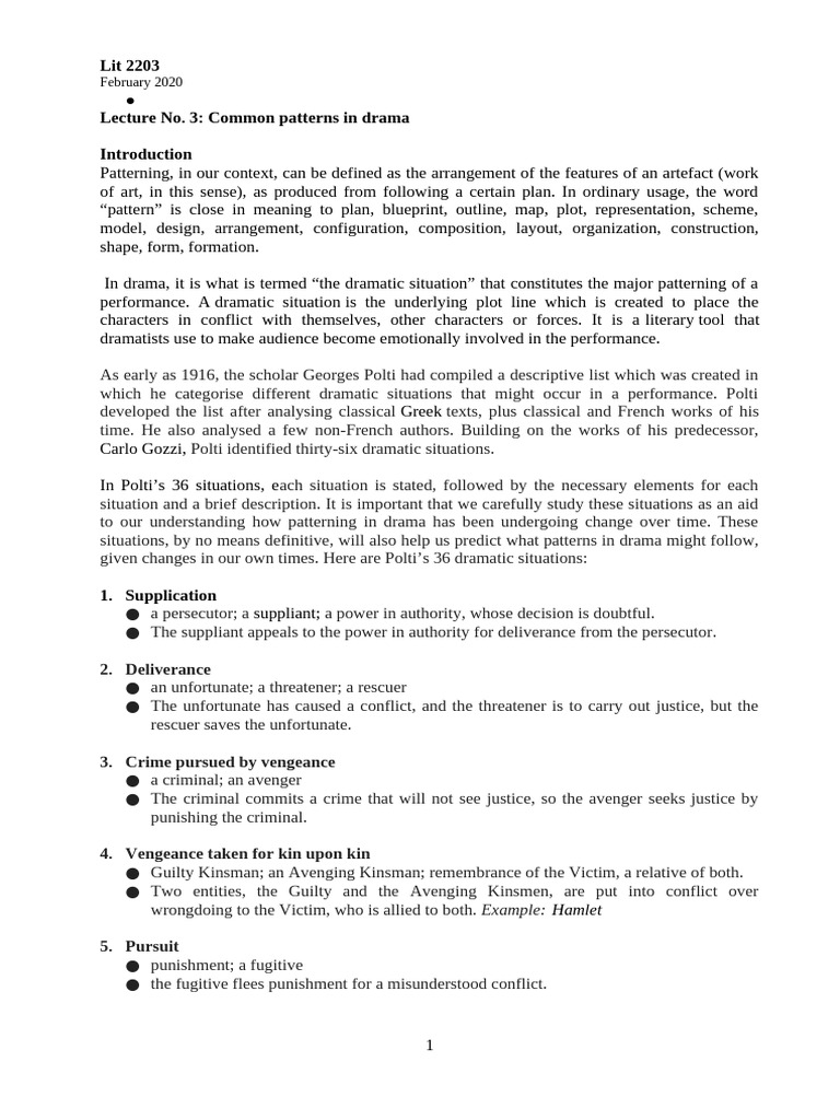 Lecture No. 3 Common Patterns in Drama | PDF | Adultery | Plot (Narrative)