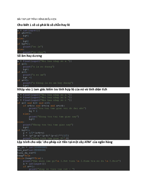 Bài Tập Python Có Lời Giải - Lập Trình Cơ Bản và Nâng Cao - Studocu