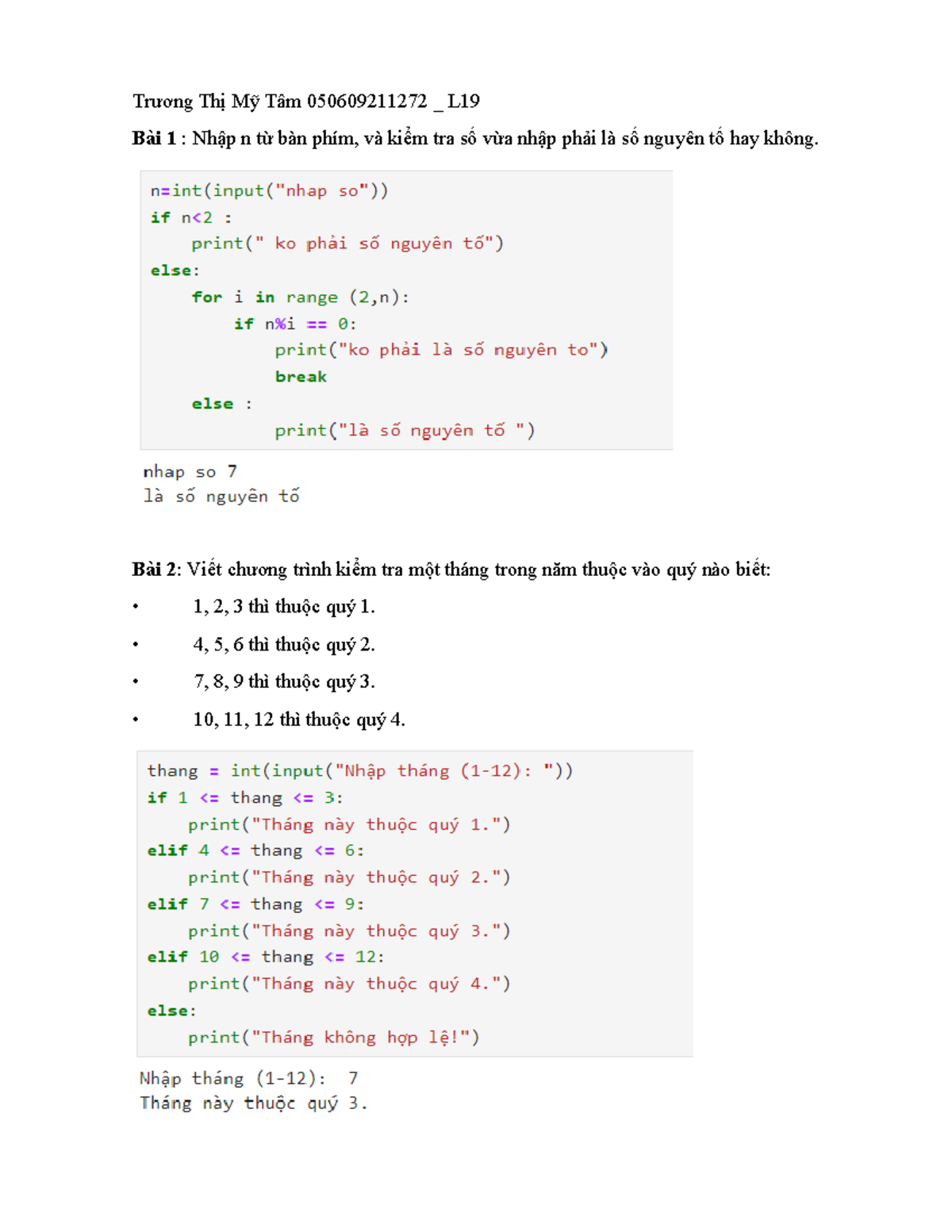 Lập Trình Python - Bài Tập Thực Hành Cơ Bản 050609211272 - Studocu