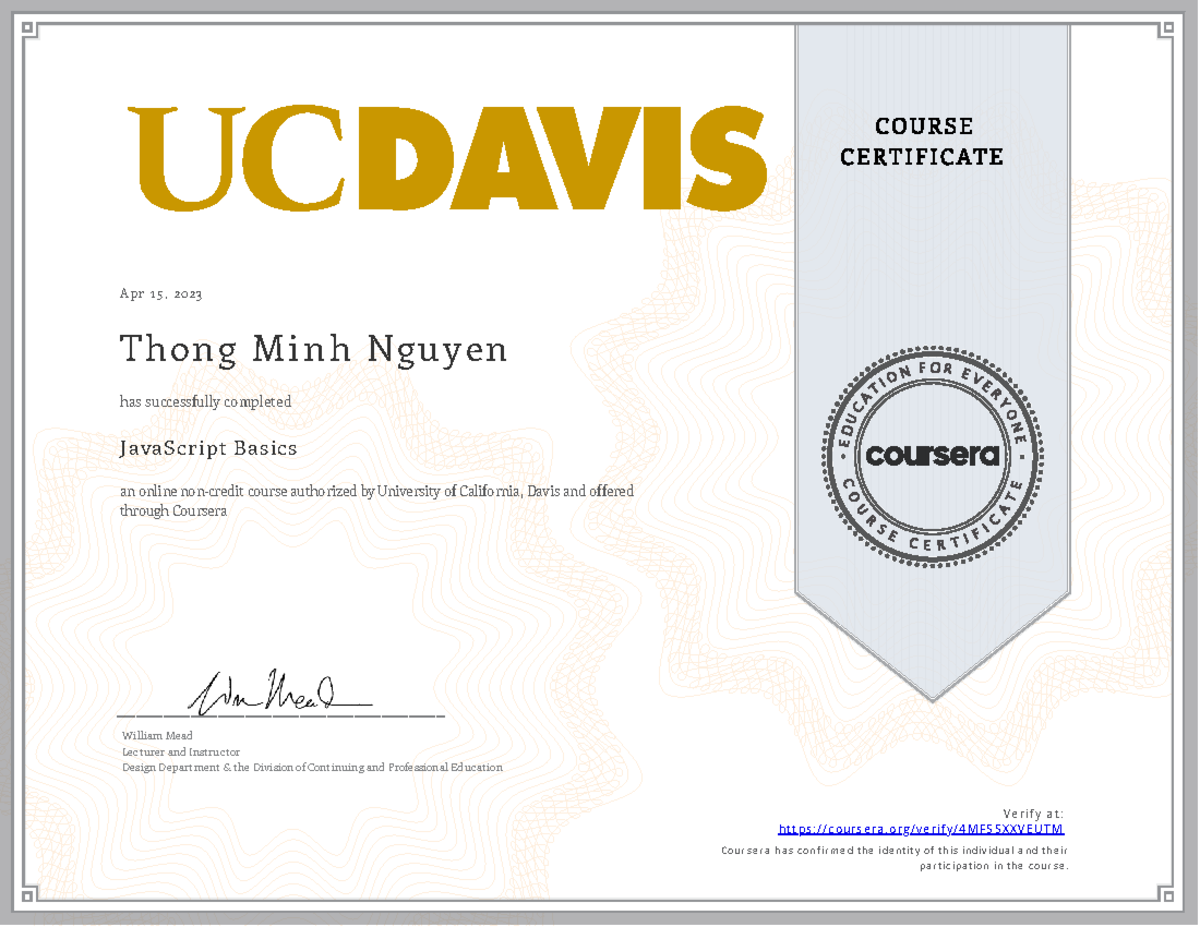 Coursera Javascript Basic - A p r 1 5 , 2 02 3 Thon g Mi nh Nguy en ...