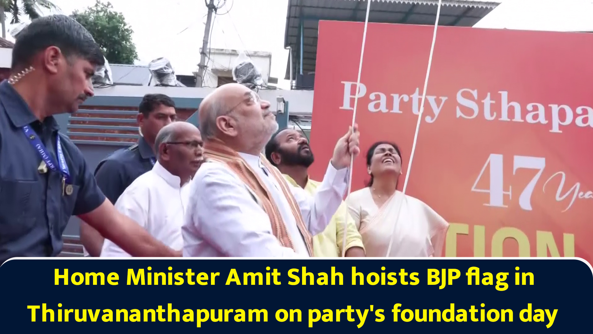 Home Minister Amit Shah hoists BJP flag in Thiruvananthapuram on party ...