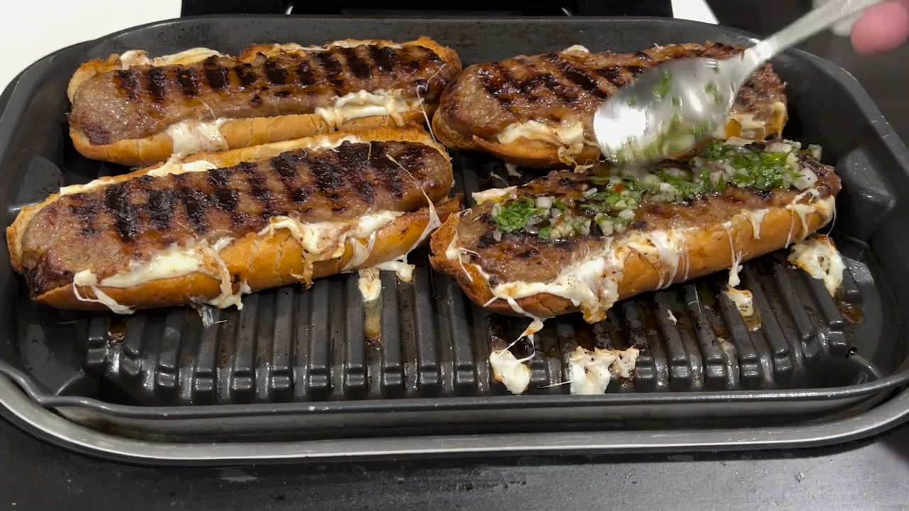 Grilled sausage sandwich on the Ninja Foodi Grill