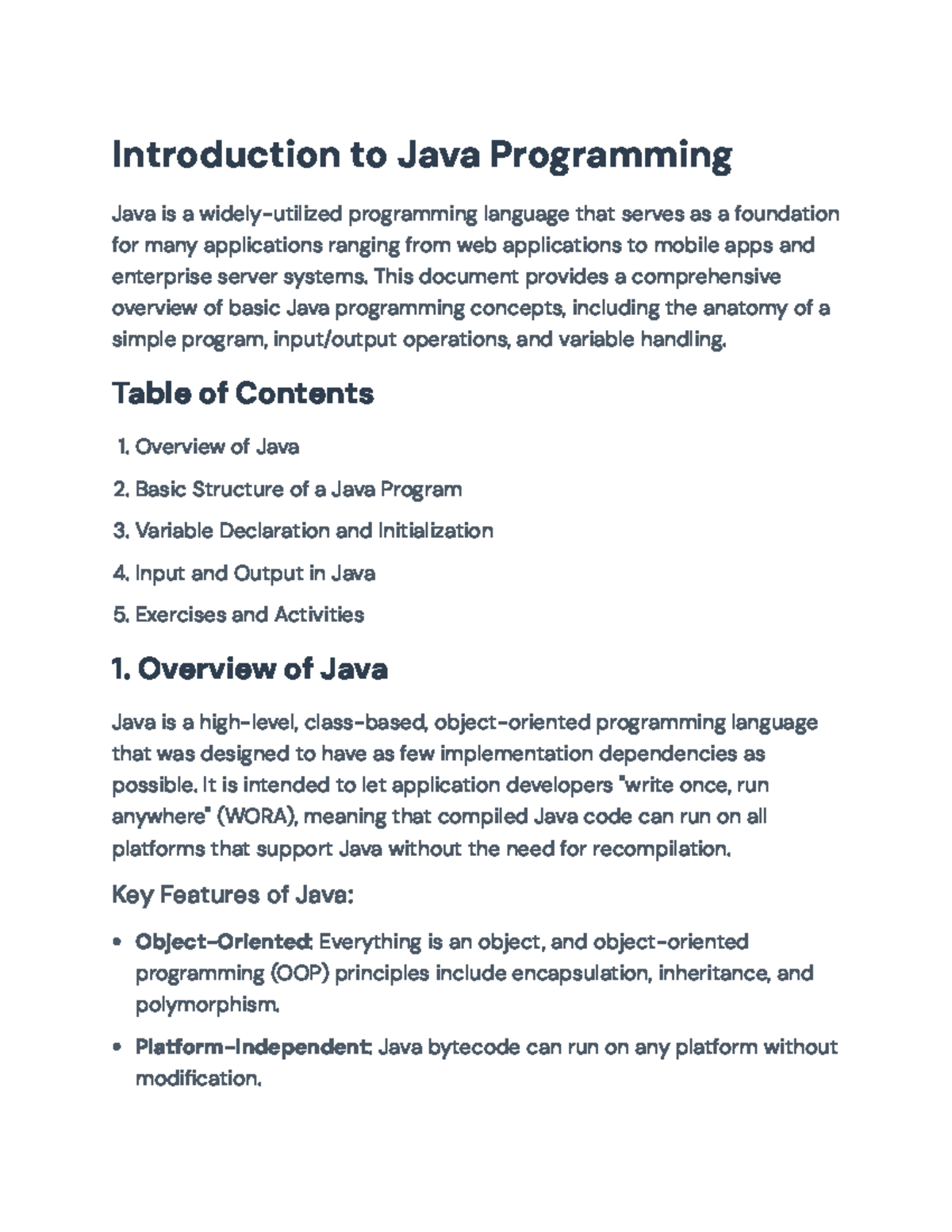 Java Programming Basics: Structure, Variables, and I/O Operations ...