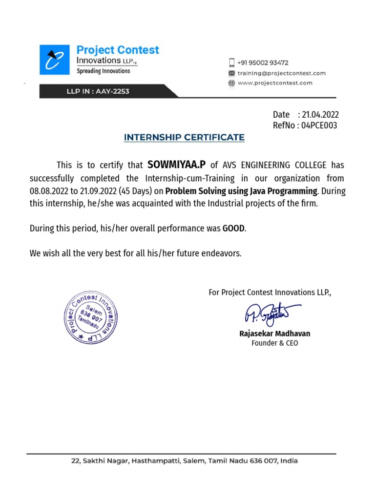 GOPALAKRISHNAN V on LinkedIn: #java #programming #internship # ...