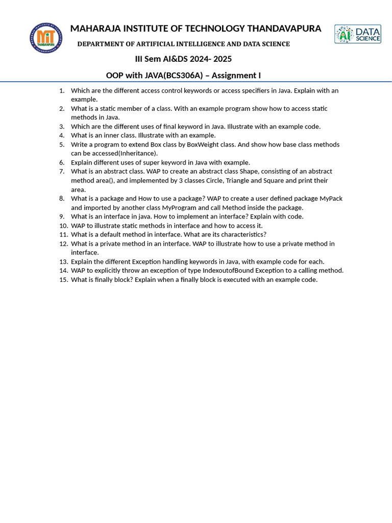 Btech (Cse) V Semester - First Java Assignment | PDF | Teaching Methods ...
