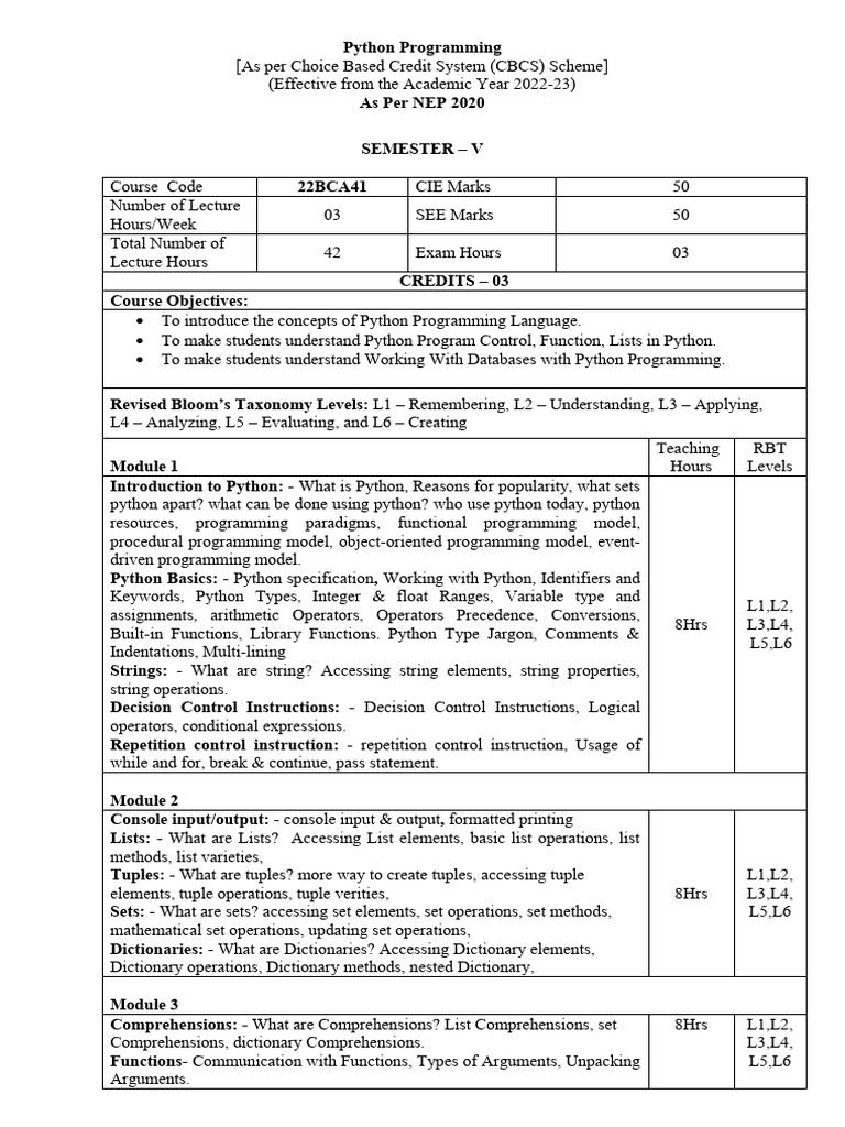 Python Programming Syllabus (21EC643) for VI Semester Engineering - Studocu
