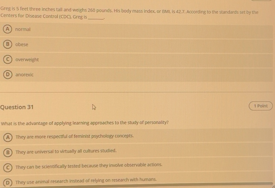 Solved: Greg is 5 feet three inches tall and weighs 260 pounds. His ...