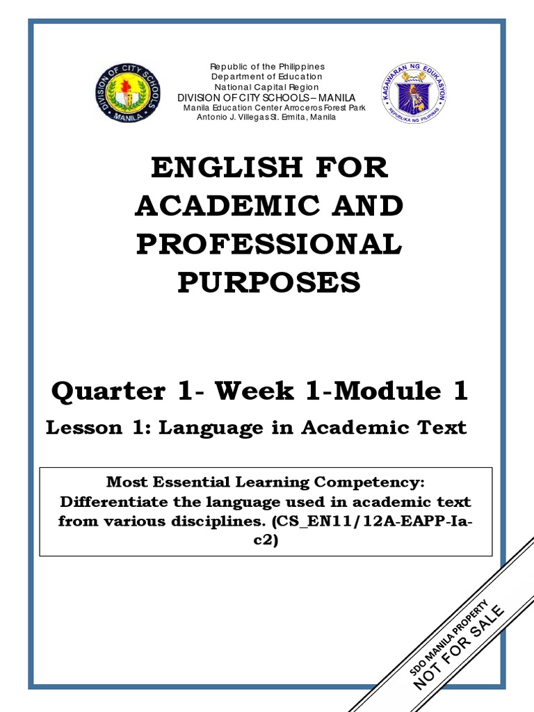 EAPP - Q1 - W1 - Mod1 - Divisions of City School Manila 11 Pages | PDF ...