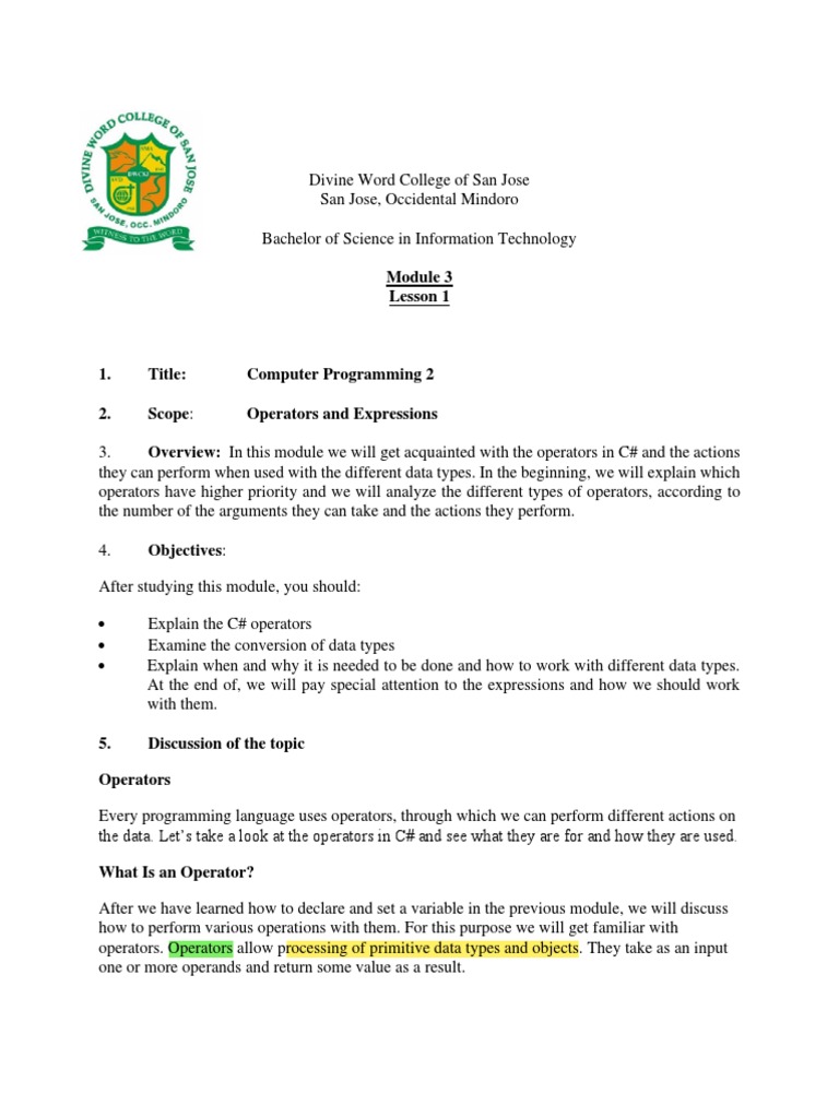 C# Operators - Arithmetic, Comparison, Logical and More - PDF | PDF | C ...