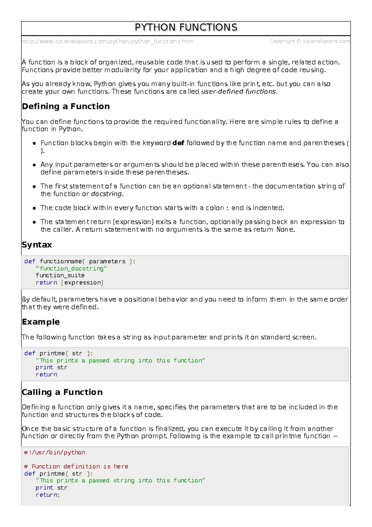 Python functions - notes - tutorialspoint/python/python_functions.htm ...