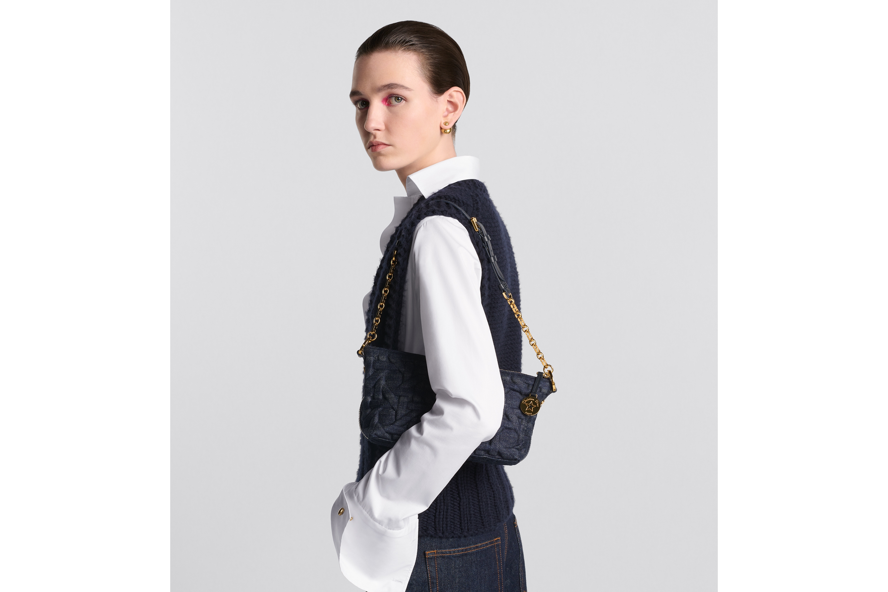 Sac hobo Diorstar à chaîne Denim à motif Graphic Cannage bleu | DIOR