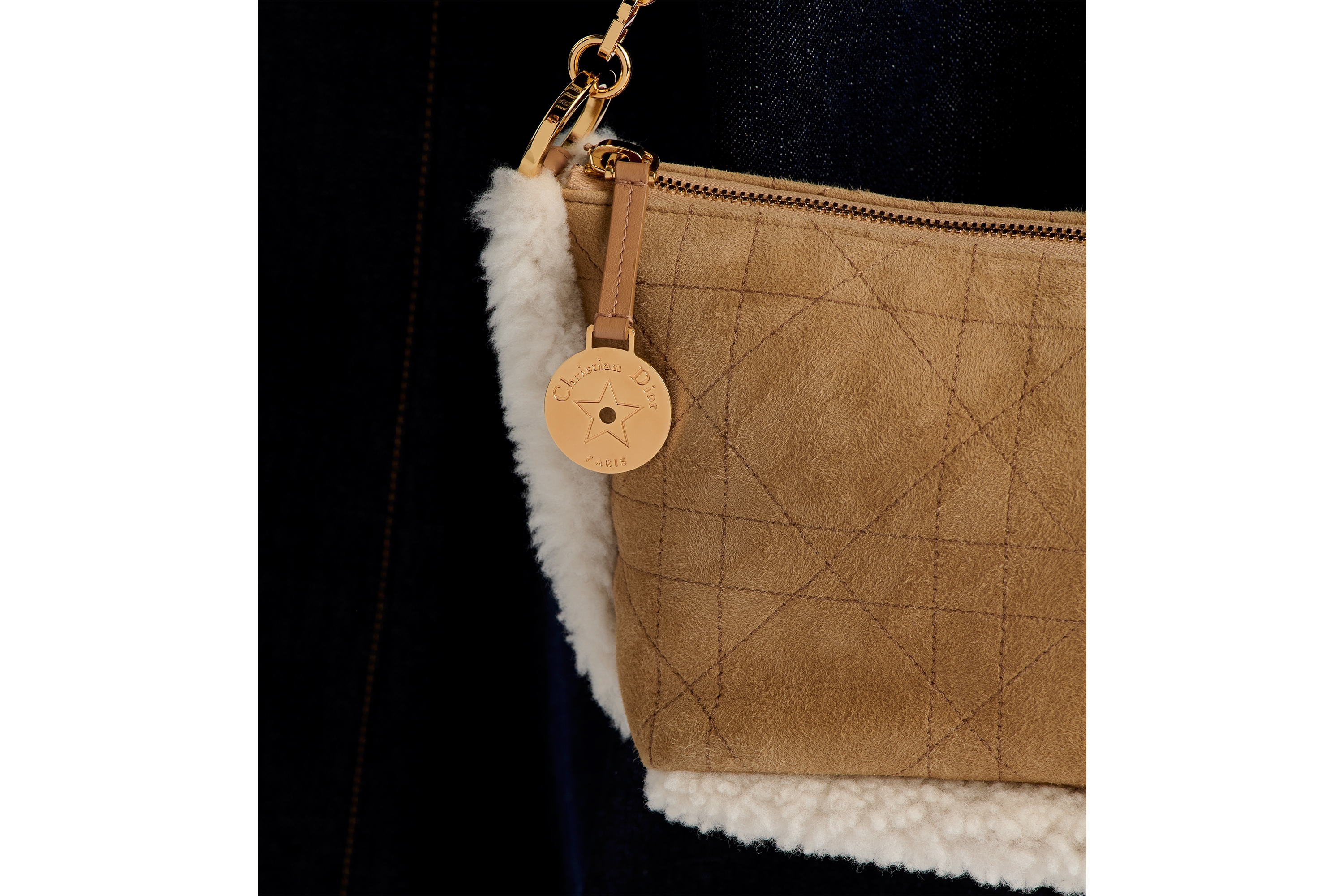 Sac Lady Dior Medium Cuir suédé beige et peau lainée d'agneau écrue | DIOR