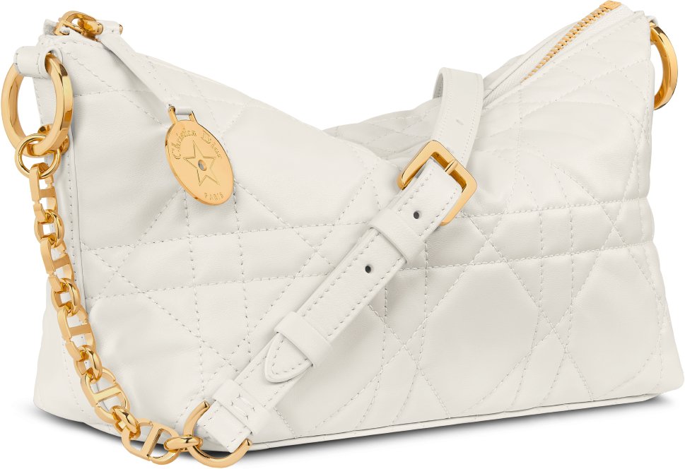 DiorAlps Diorstar Hobo Bag with Chain Beige Macrocannage Suede Calfskin ...