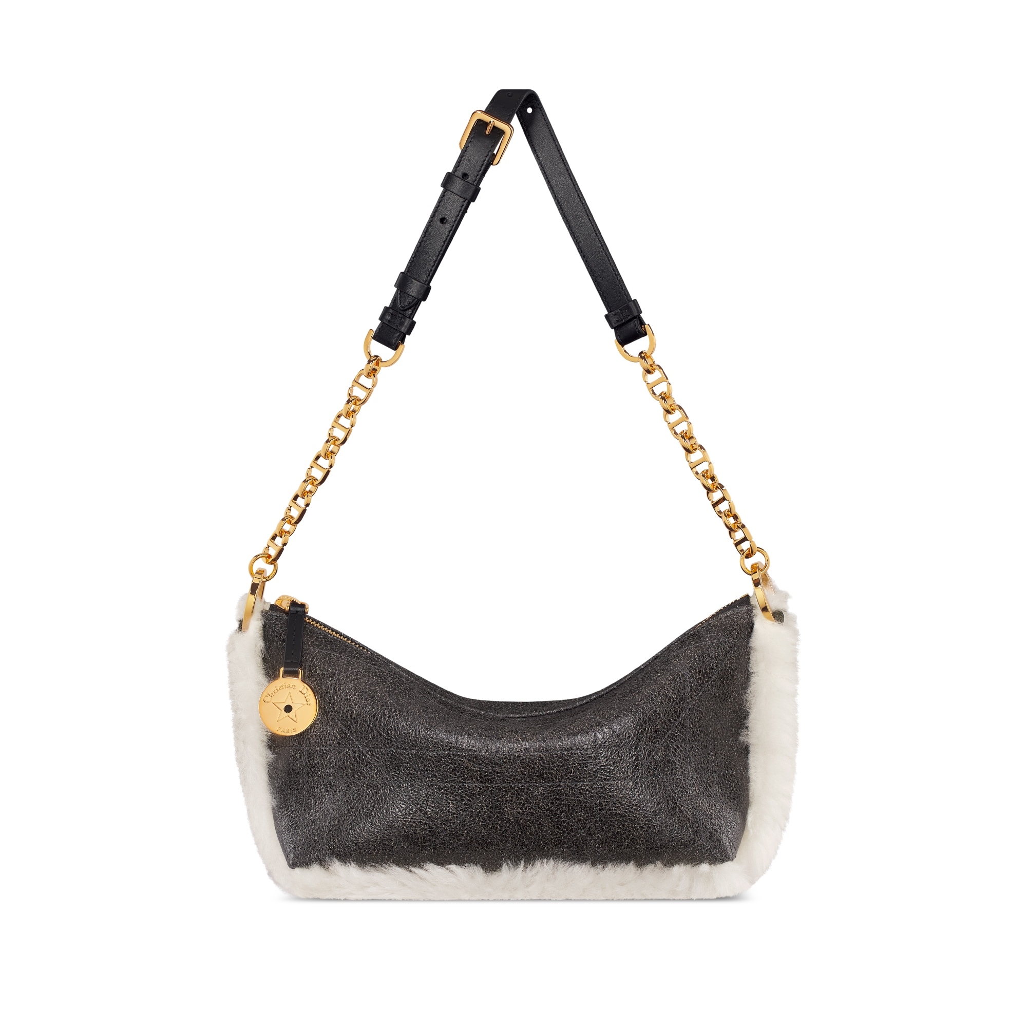 Sac hobo Diorstar à chaîne Cuir de veau craquelé Macrocannage noir | DIOR