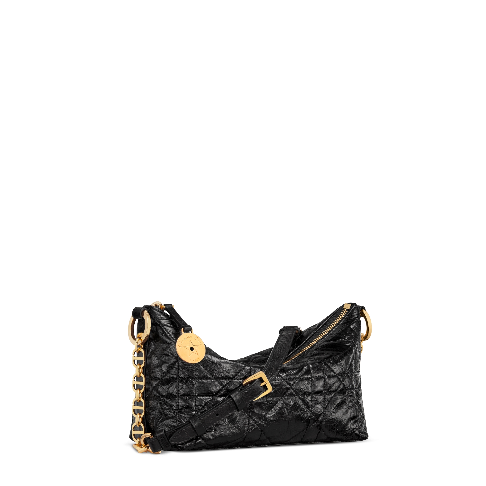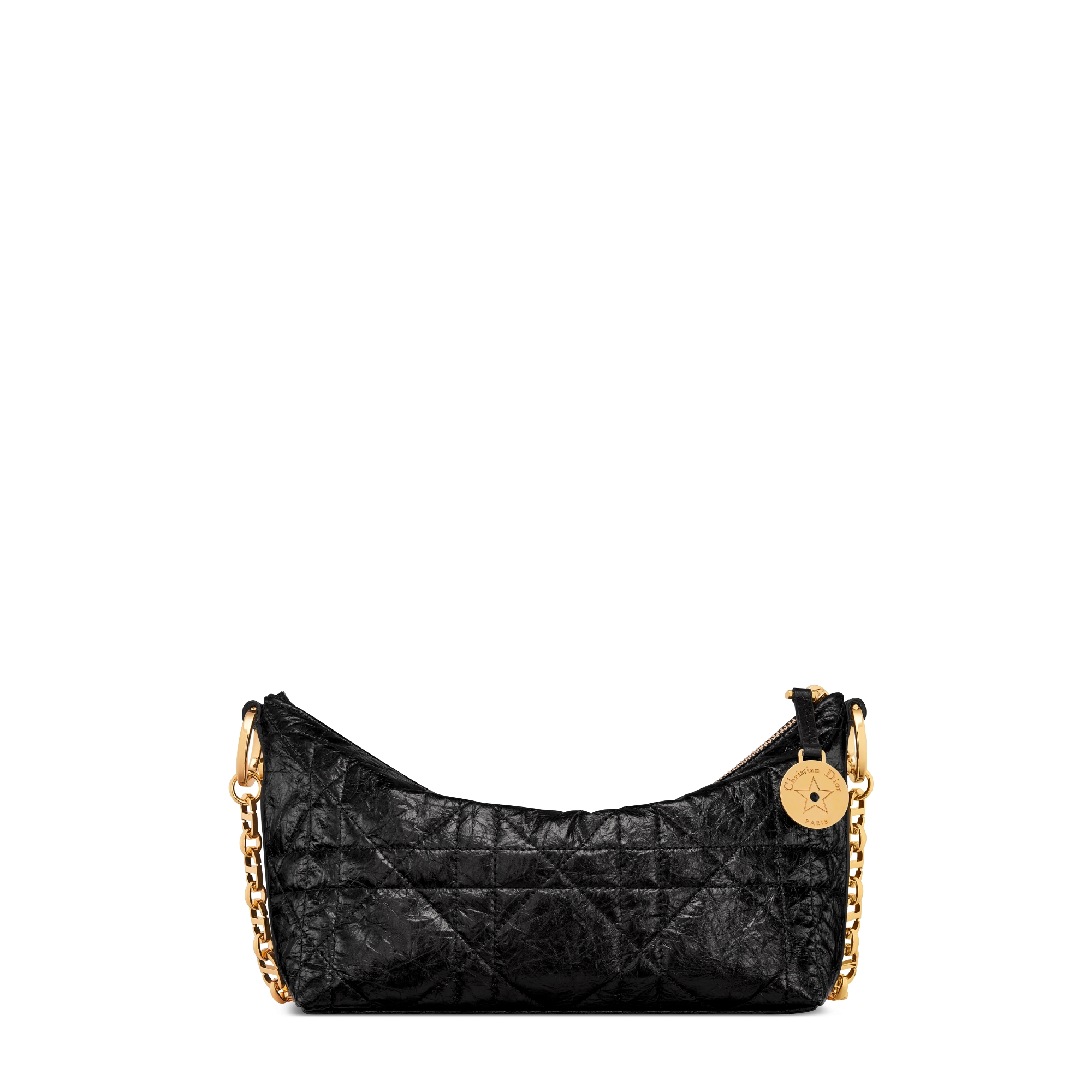 Dior Women Diorstar Hobo Bag with Chain Black Macrocannage Crinkled ...