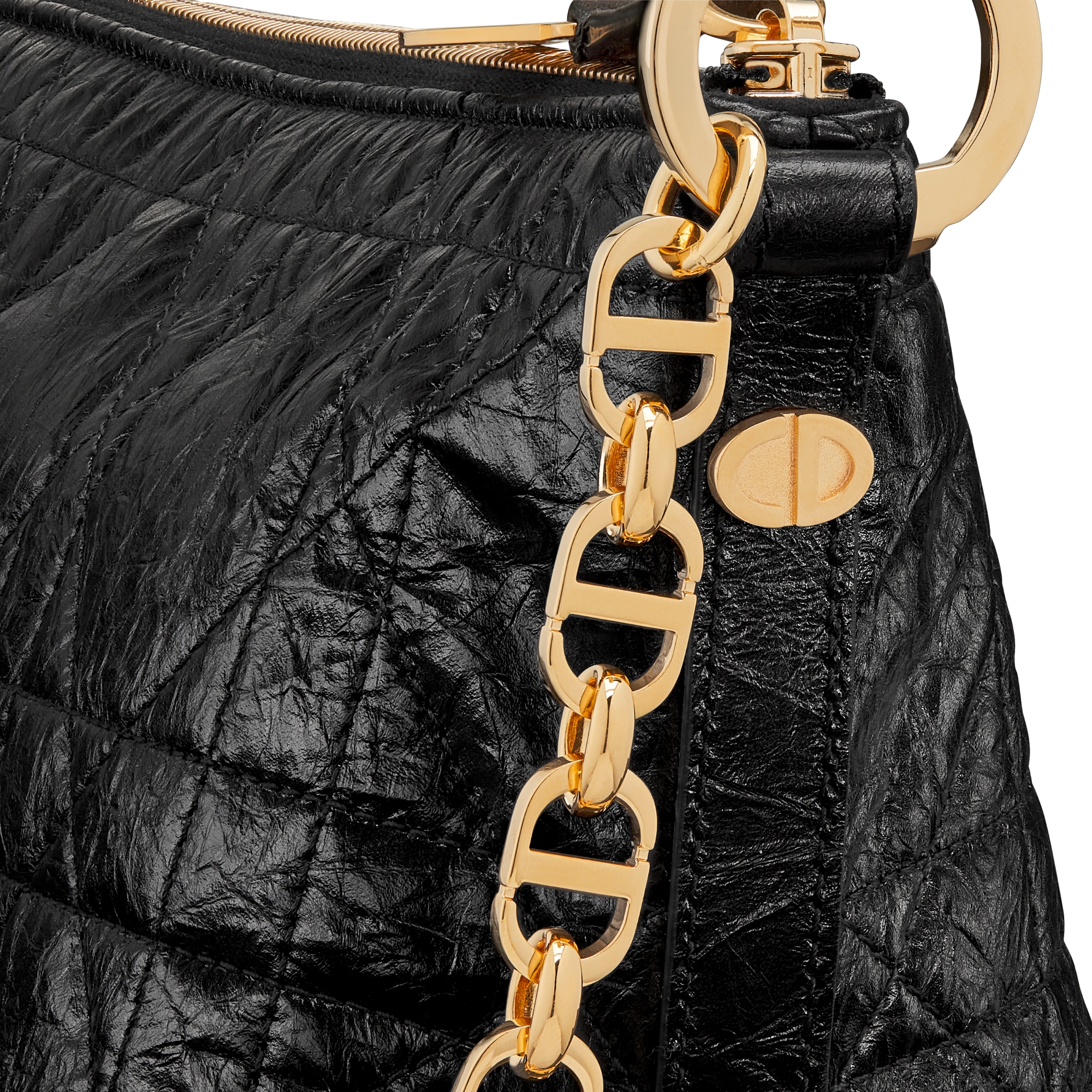 Diorstar Hobo Bag with Chain Black Macrocannage Crinkled Calfskin | DIOR