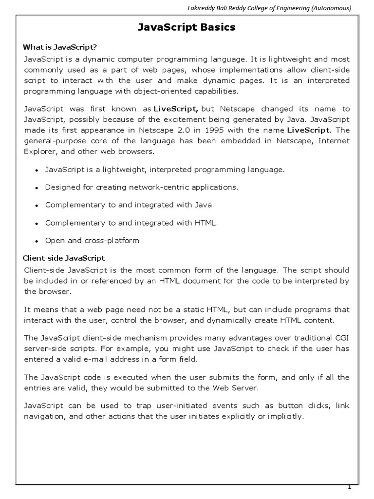 Javascript Notes | PDF | Java Script | Dynamic Web Page