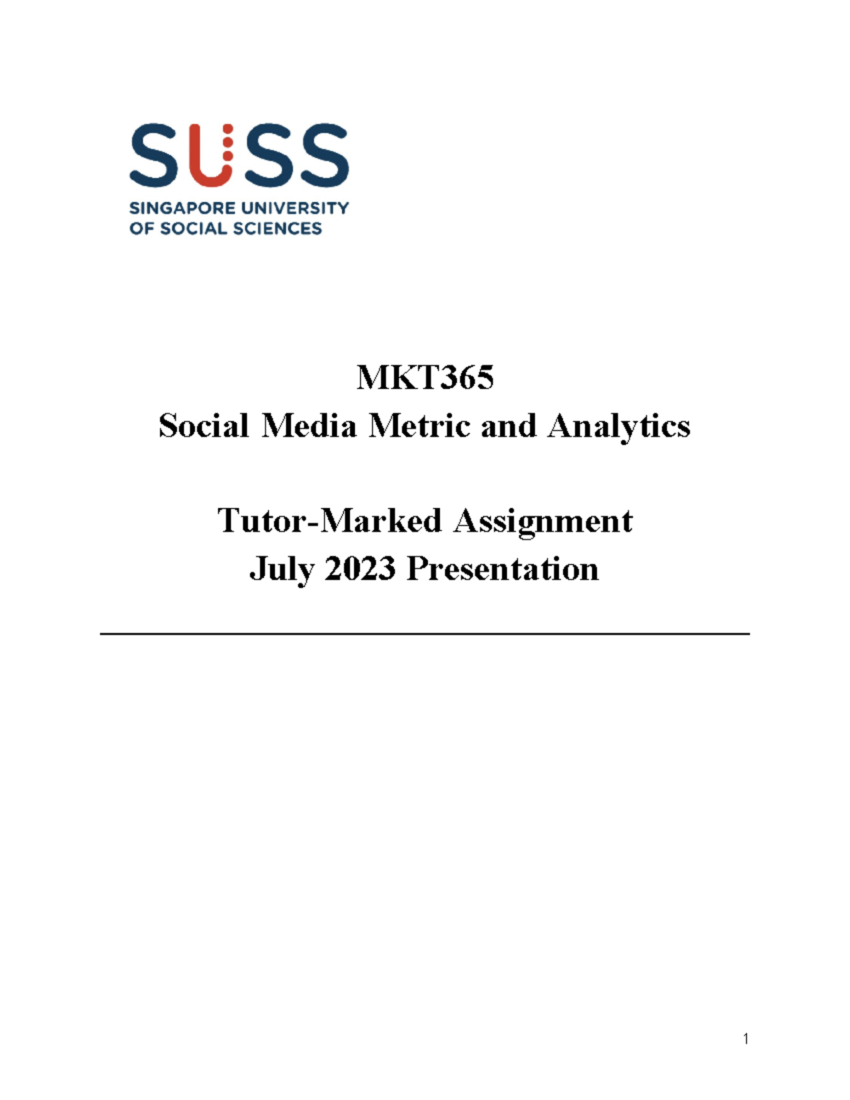 MKT365 TMA Report - MKT Social Media Metric and Analytics Tutor-Marked ...