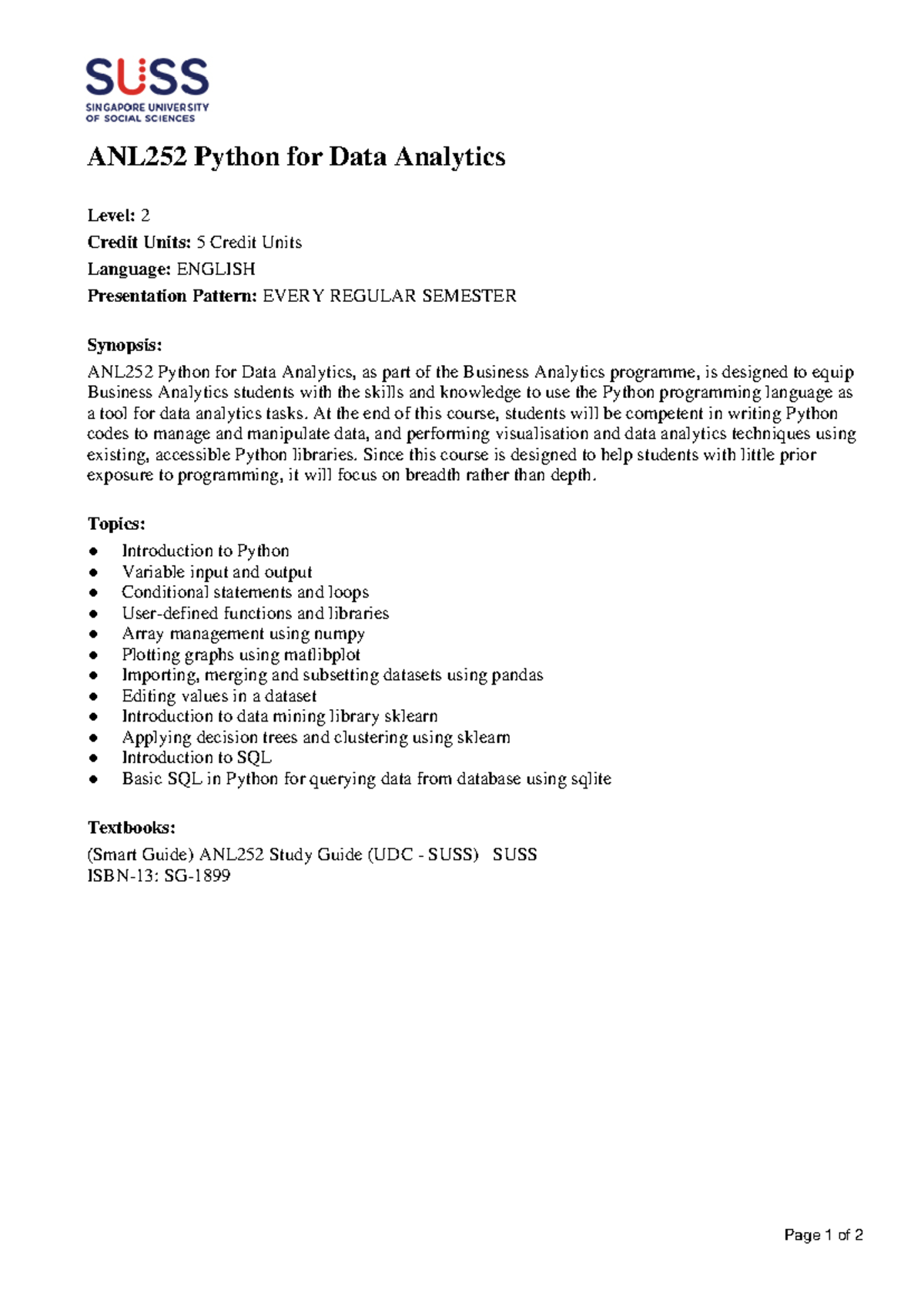 ANL252 - SUSS - Python for Data Analytics - Studocu