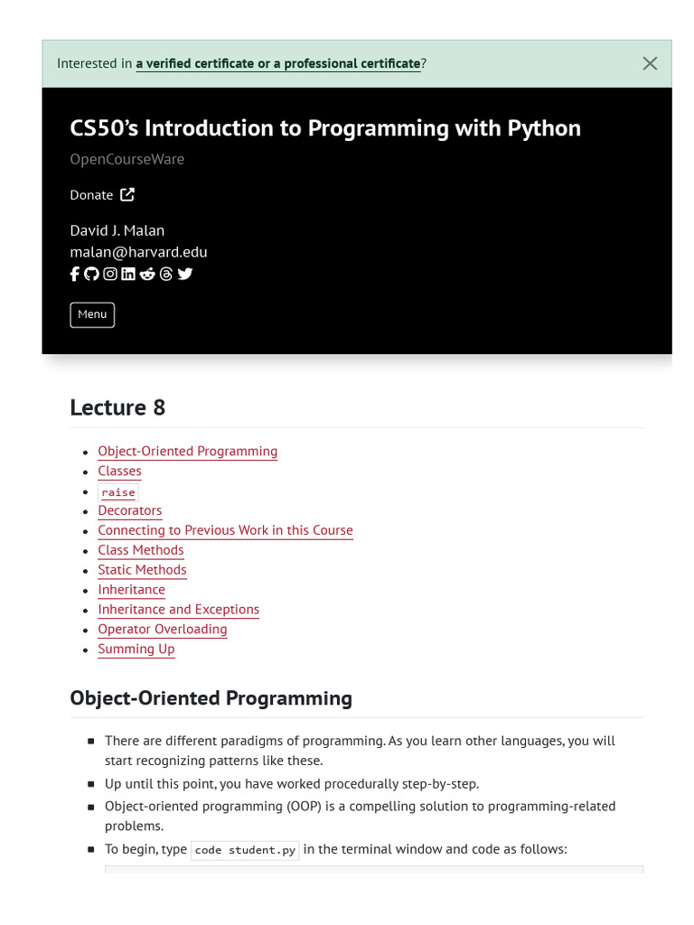 CS50’s Introduction to Programming with Python – Harvard University ...