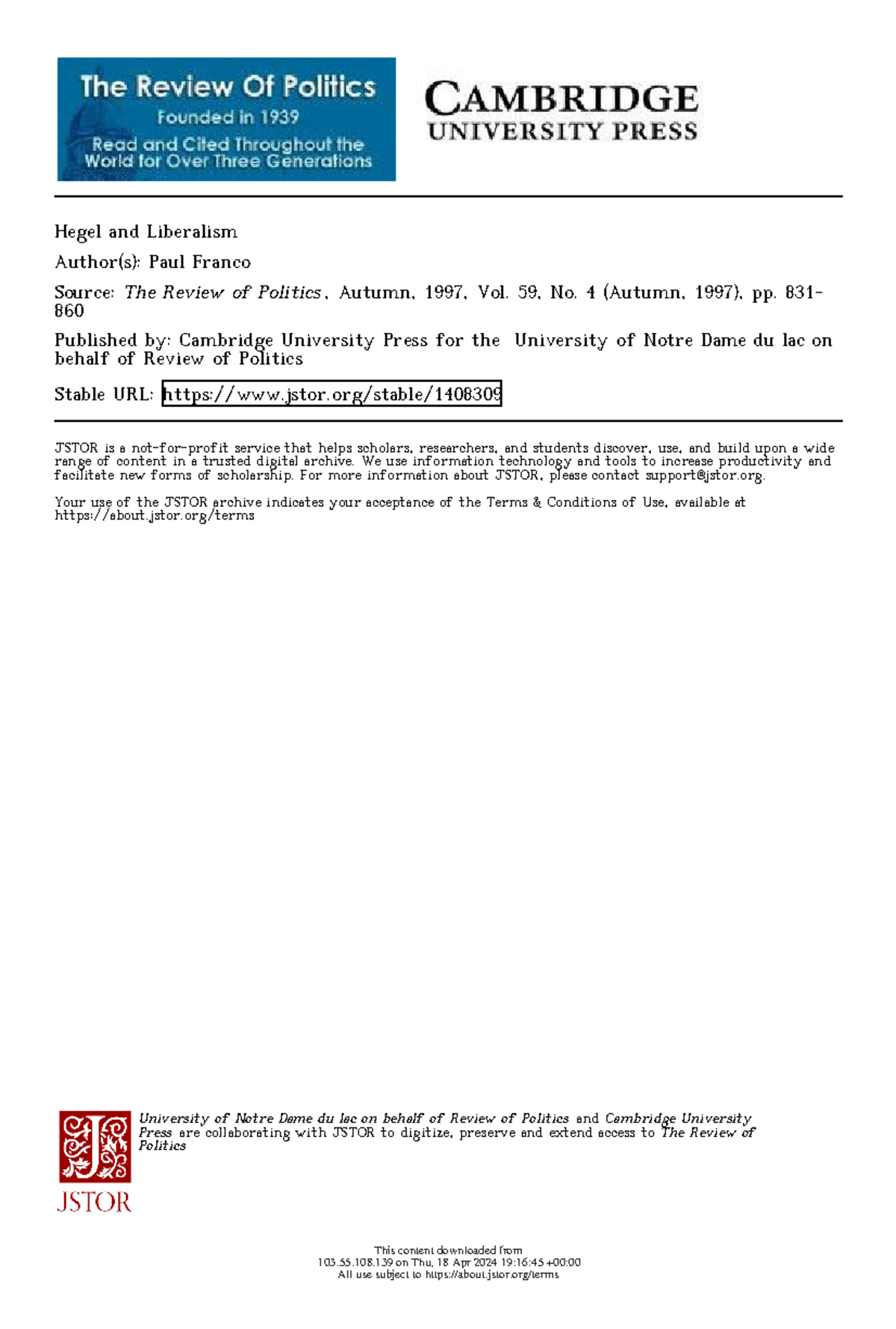 Franco-Hegel Liberalism-1997 - Hegel and Liberalism Author(s): Paul ...