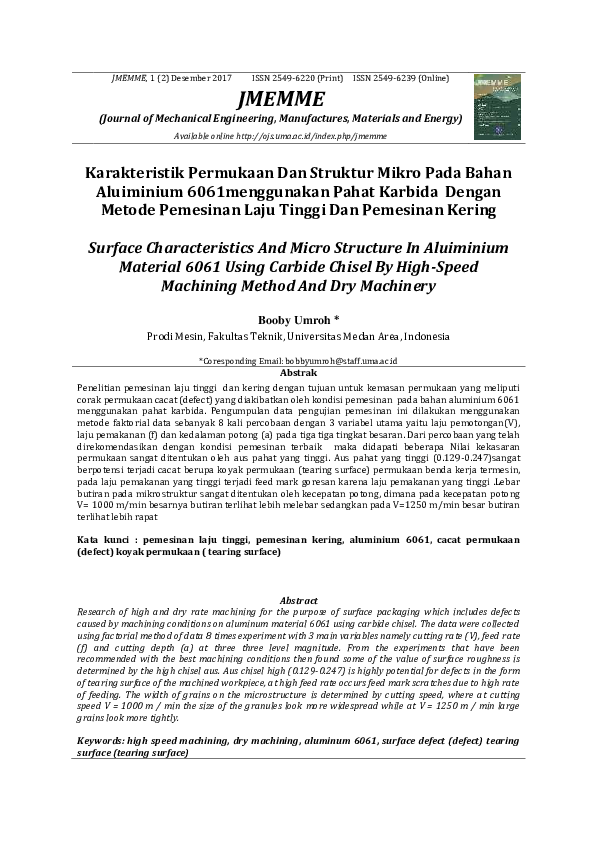 (PDF) STUDI SIFAT MEKANIK DAN STRUKTUR MIKRO PADA ALUMINIUM ALLOY 6061 ...
