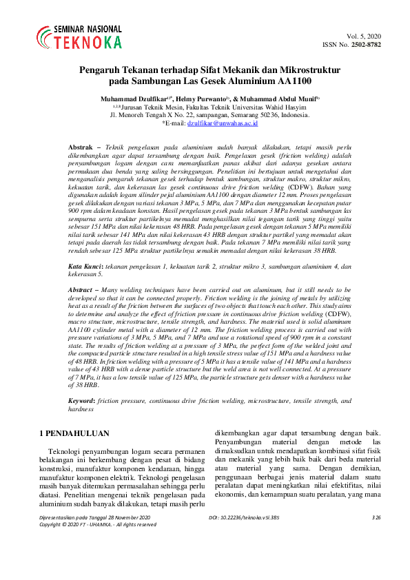 (PDF) Pengaruh Tekanan terhadap Sifat Mekanik dan Mikrostruktur pada ...