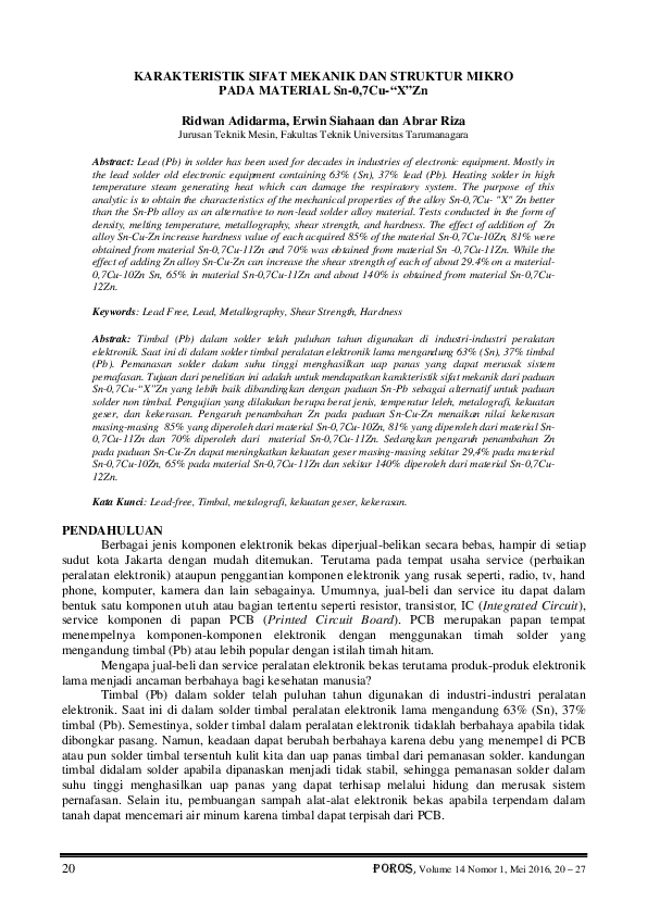 (PDF) KARAKTERISTIK SIFAT MEKANIK DAN STRUKTUR MIKRO PADA MATERIAL Sn-0 ...