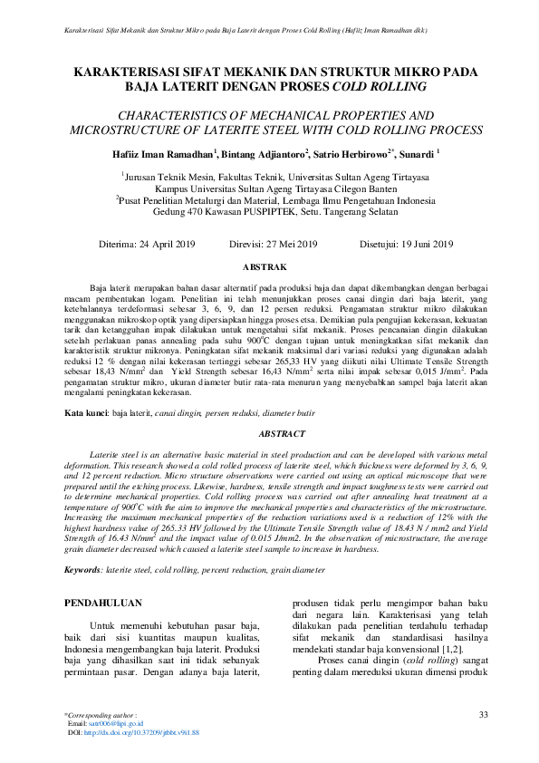 (PDF) Karakteristik Sifat Mekanik dan Struktur Mikro Baja Laterit ...
