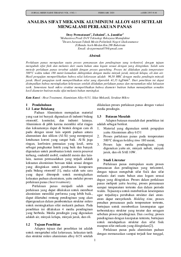 (PDF) Analisa Sifat Mekanik Aluminium Alloy 6151 Setelah Mengalami ...
