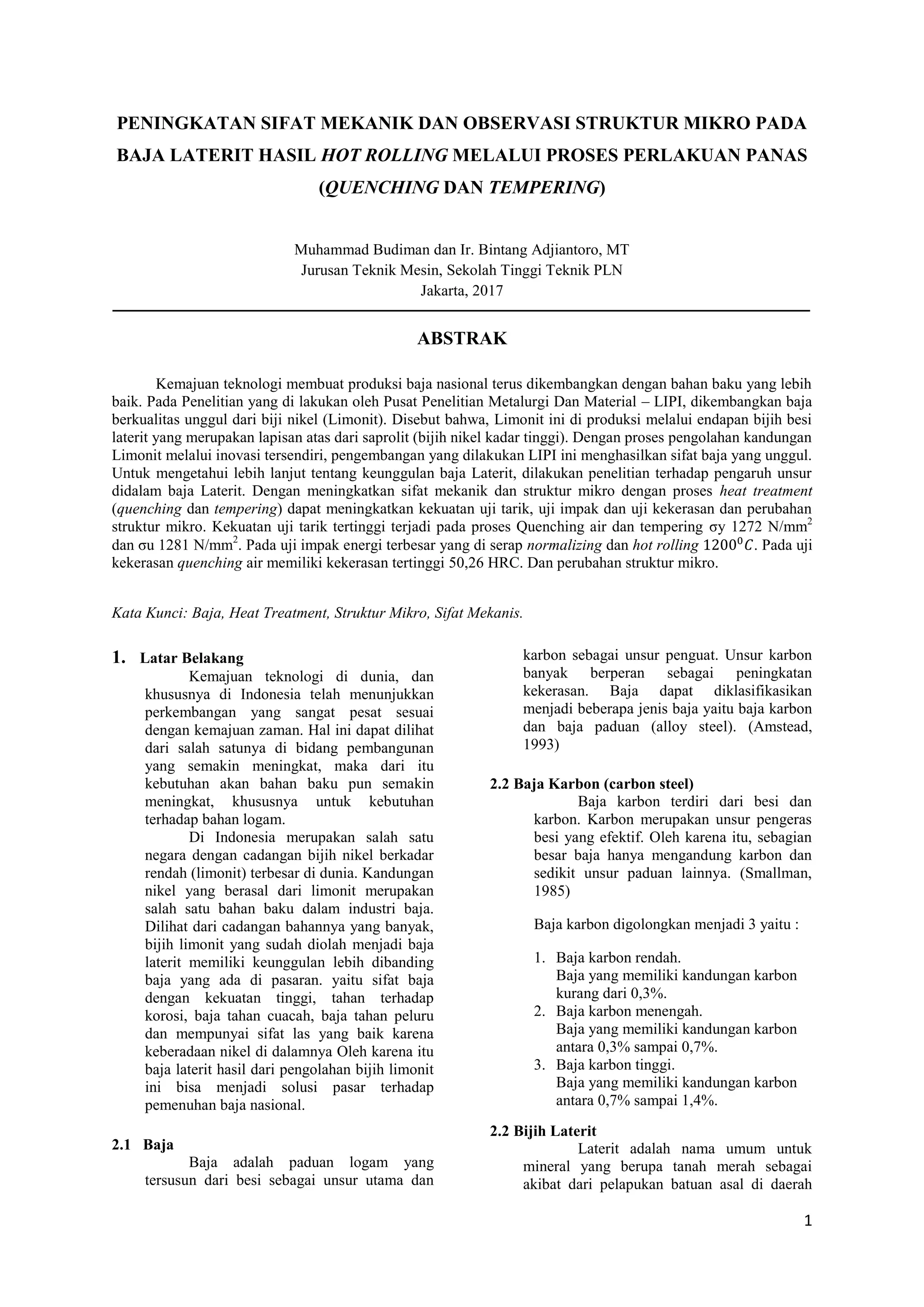 PENINGKATAN SIFAT MEKANIK DAN OBSERVASI STRUKTUR MIKRO PADA BAJA ...