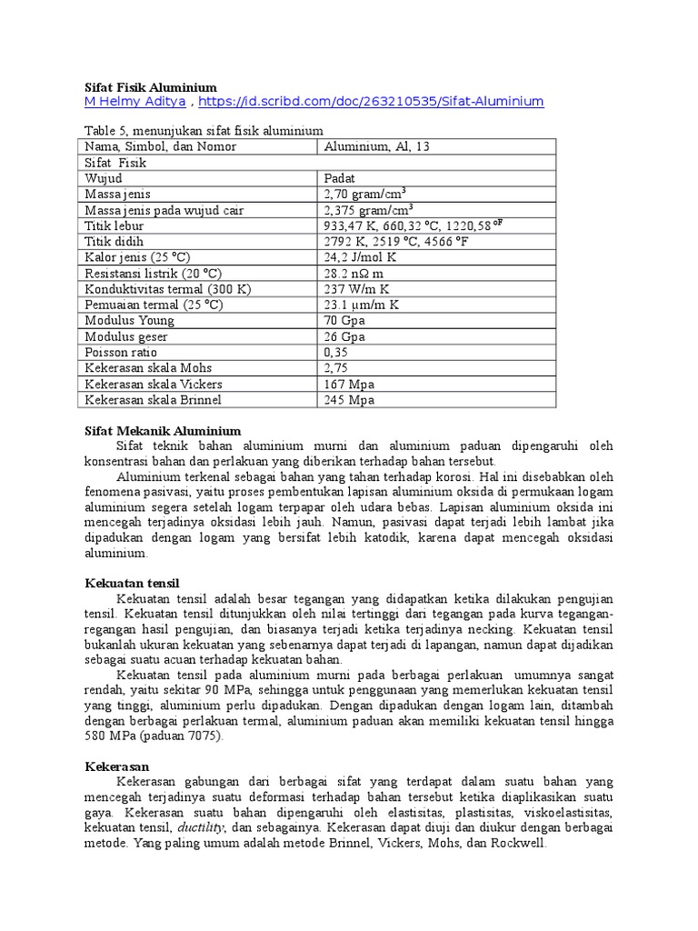 Sifat Fisik dan Mekanik Aluminium | PDF