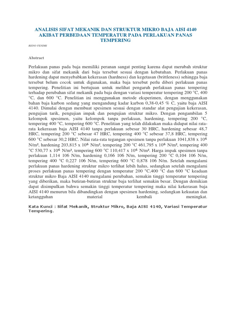 (PDF) ANALISIS SIFAT MEKANIK DAN STRUKTUR MIKRO BAJA AISI 4140 AKIBAT ...