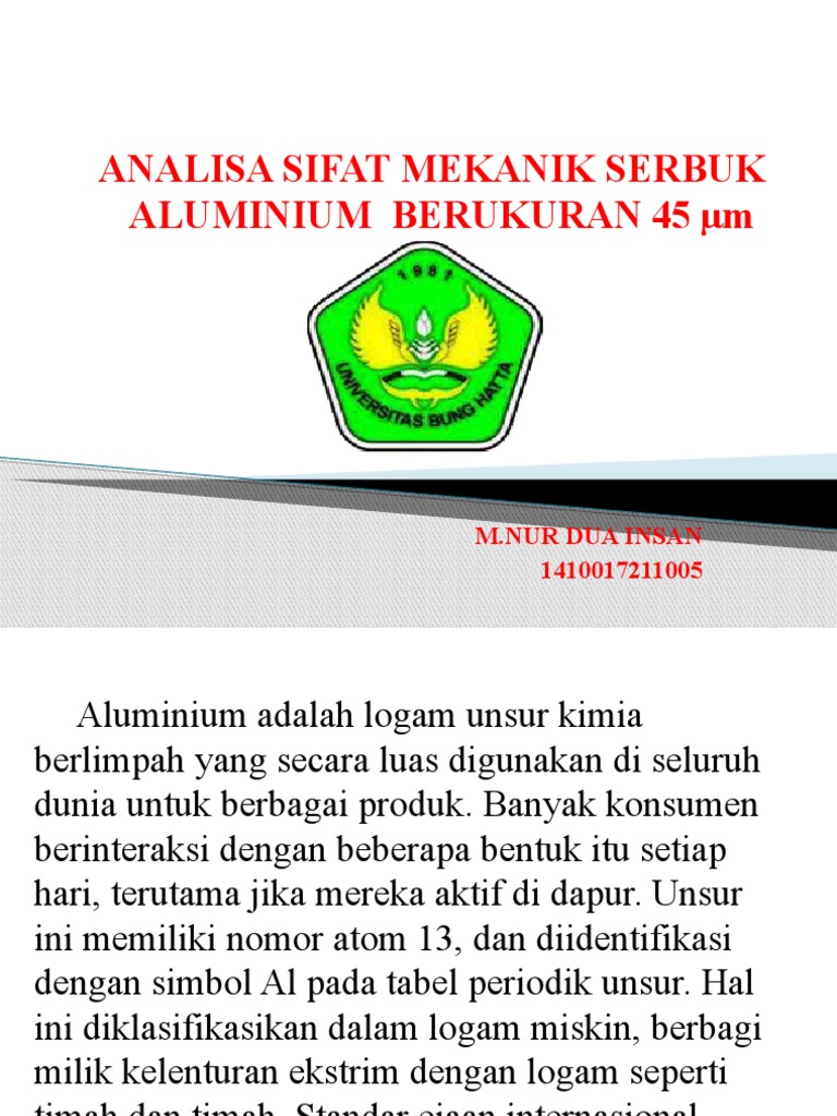 Sifat Mekanik Serbuk Aluminium 45 µm | PDF | Griya & Taman | Sains ...