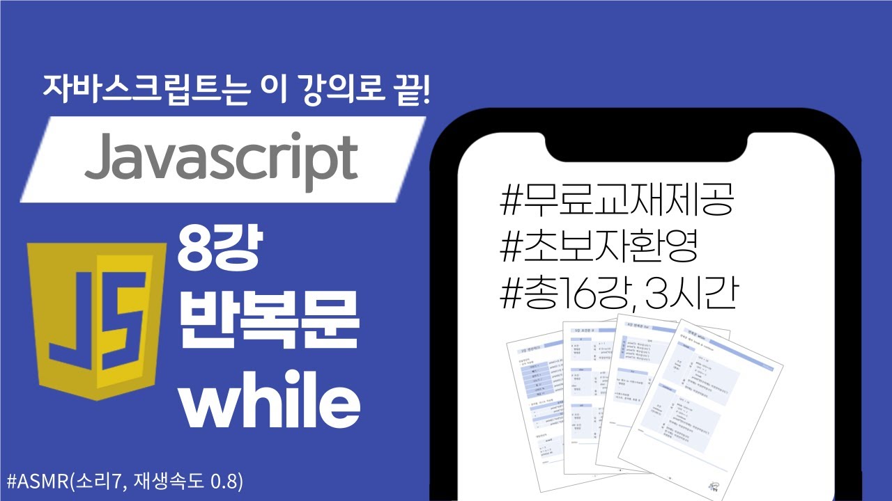 [자바스크립트 8강] 반복문 while_교재제공 - YouTube