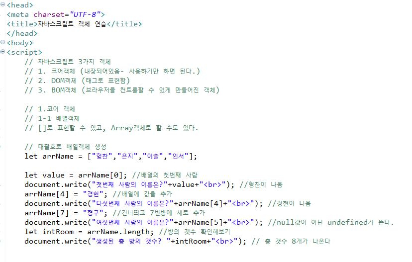자바스크립트 기본 문법 12 - 배열 1 : 자바스크립트에서의 배열에 대한 개념 학습 및 실습해보기