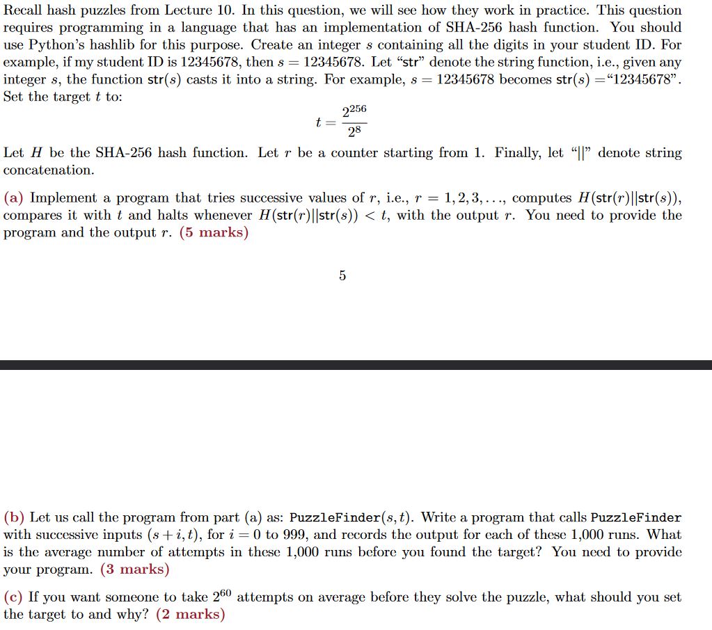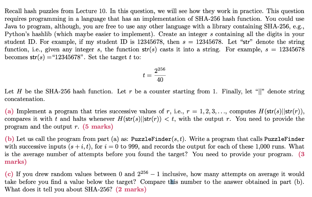 Solved Recall hash puzzles from Lecture 10. In this | Chegg.com