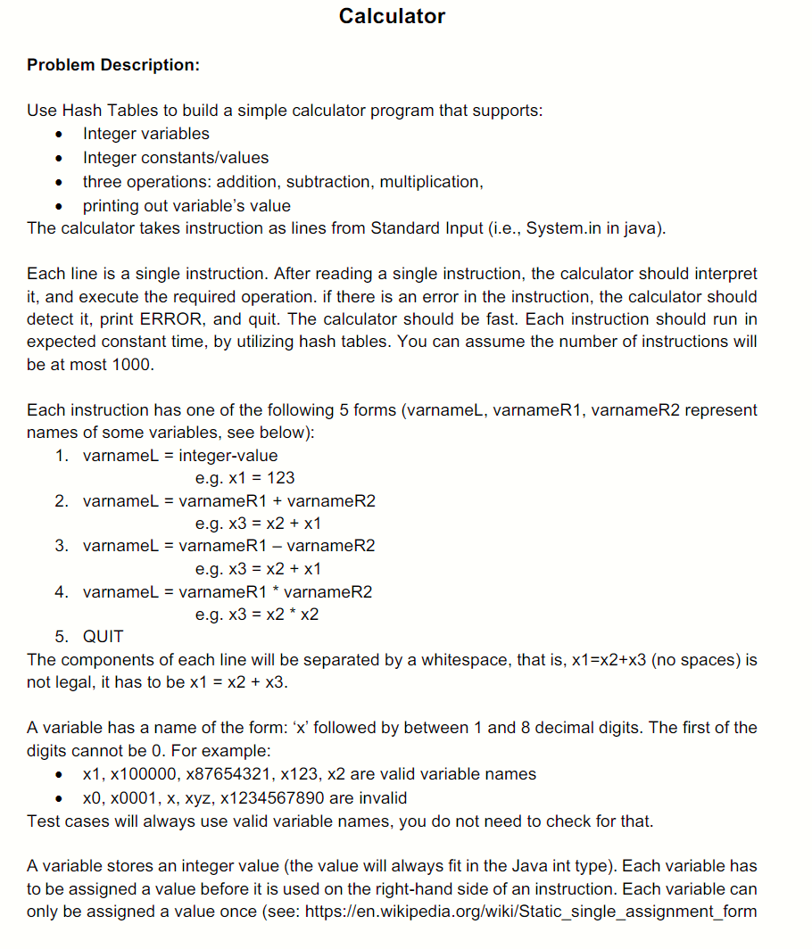 Solved Calculator Problem Description: . Use Hash Tables to | Chegg.com