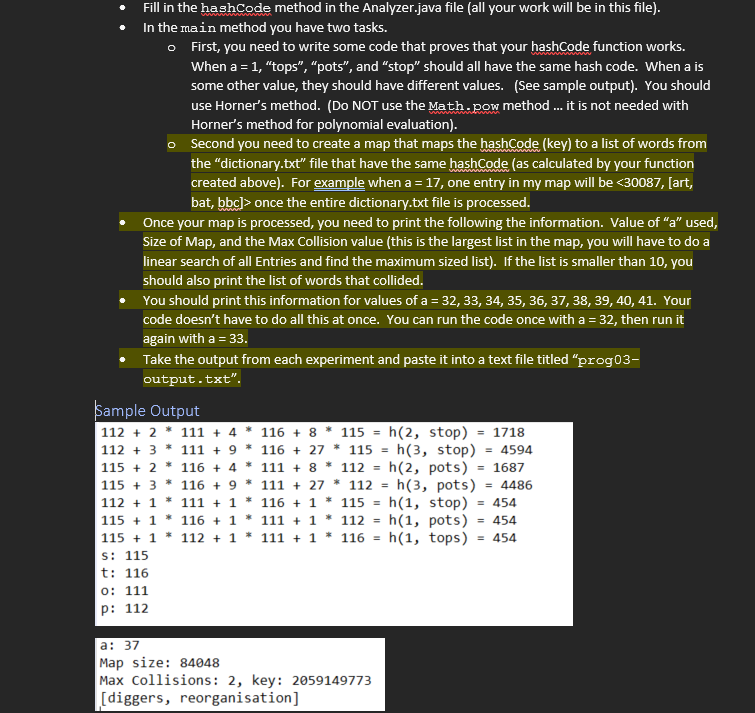 Solved Fill in the hashCode method in the Analyzer.java file | Chegg.com