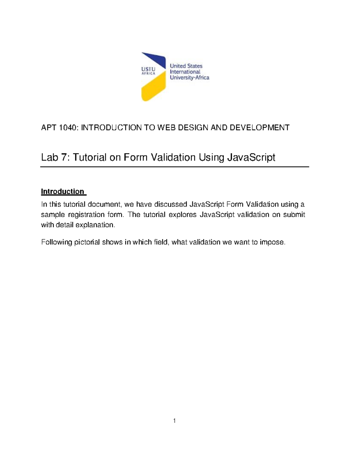 Lab 7: APT 1040 JS Form Validation Tutorial and Code Explanation - Studocu