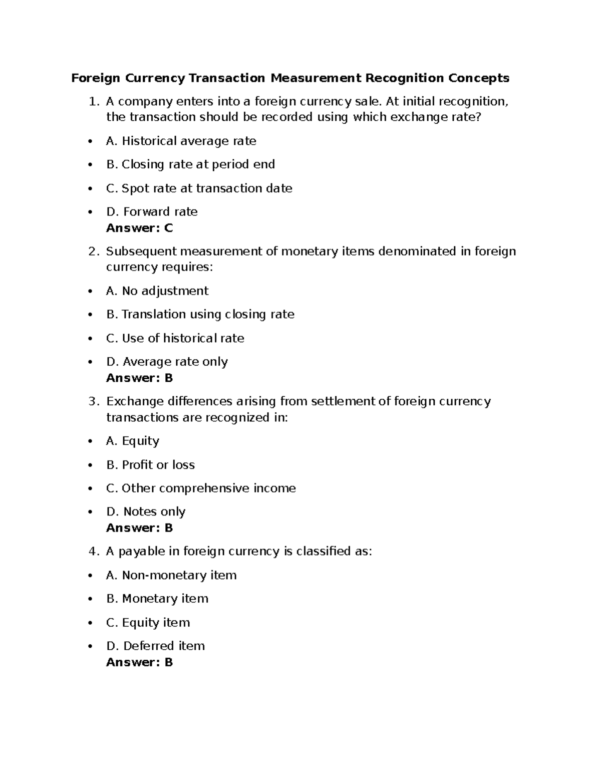 Foreign Currency Transaction Measurement Concepts - Exam Review - Studocu