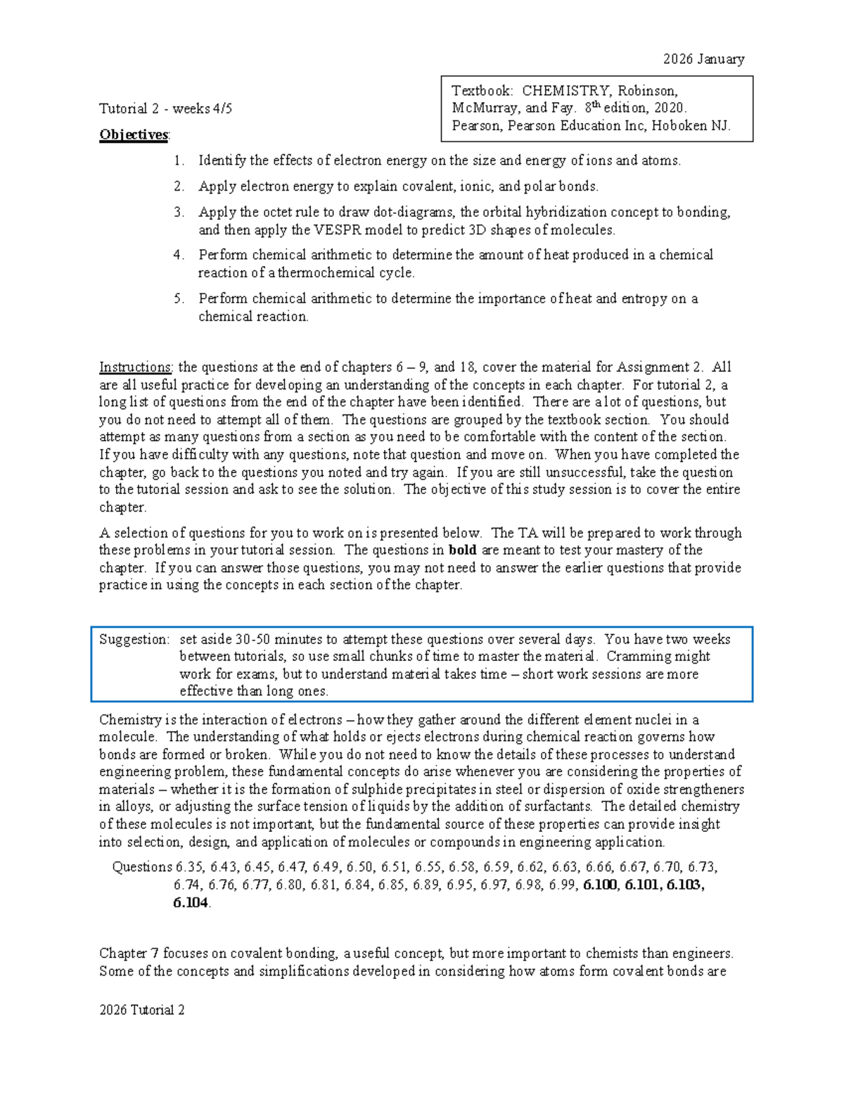 2026 CHEM 101 Tutorial 2: Key Concepts & Practice Questions - Studocu