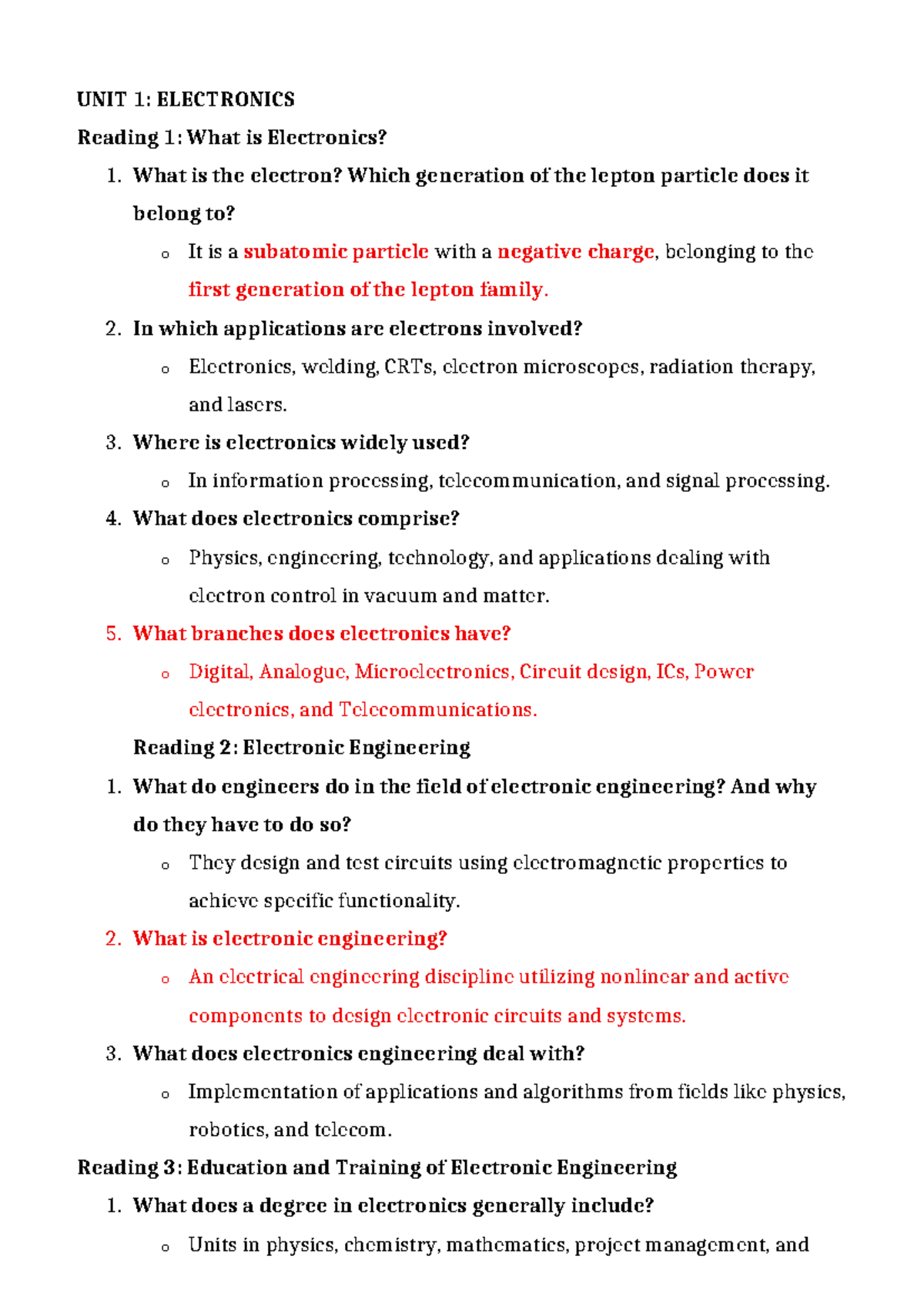 UNIT 1: ELECTRONICS Overview and Key Concepts - Studocu