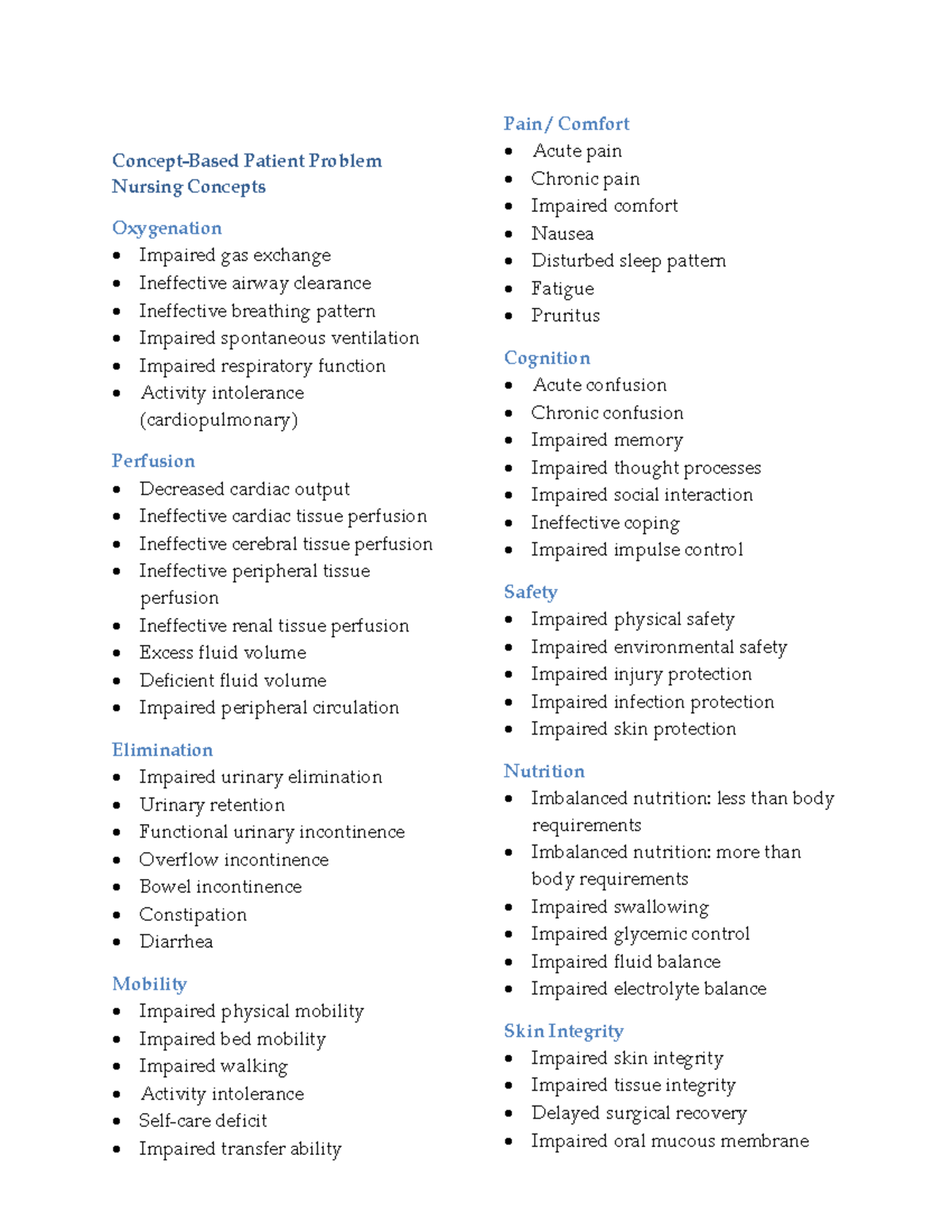 Nursing Concepts: Patient Problems in Oxygenation & Mobility - Studocu