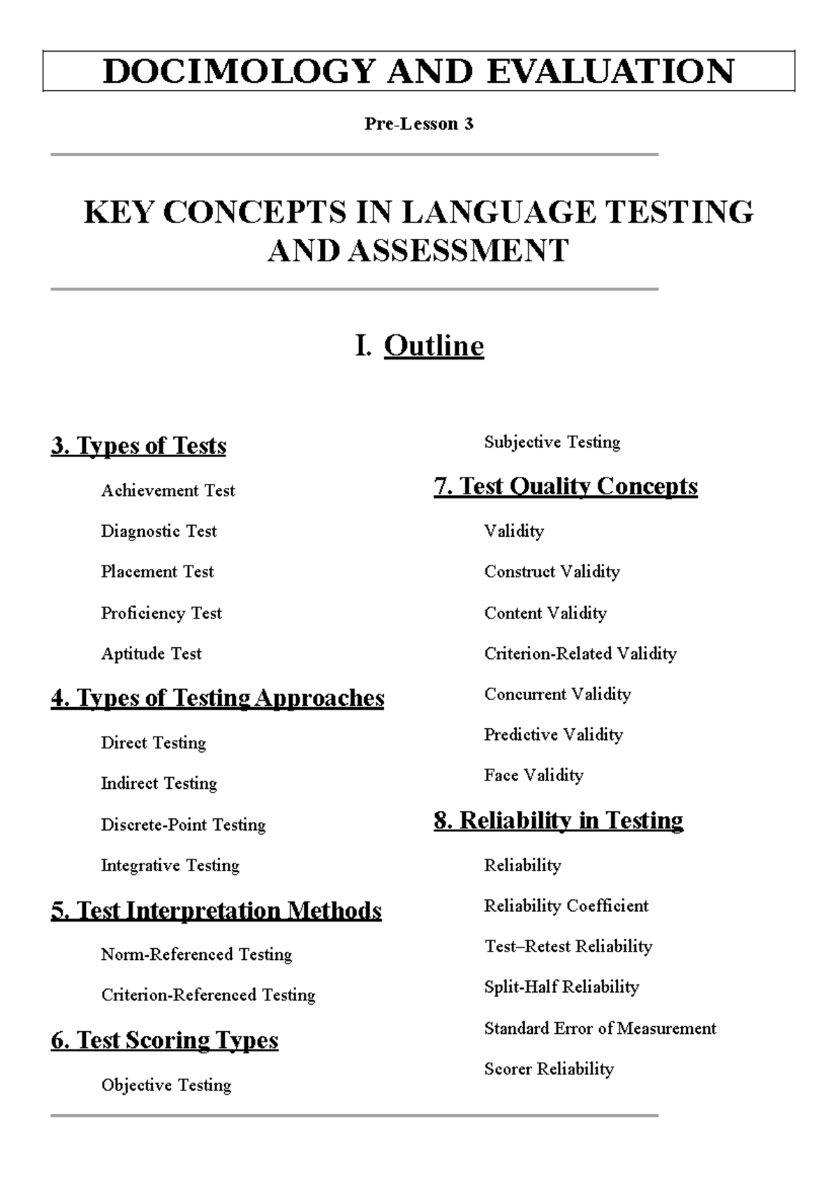 Pre-Lesson 3: Key Concepts in Language Testing & Assessment - Studocu