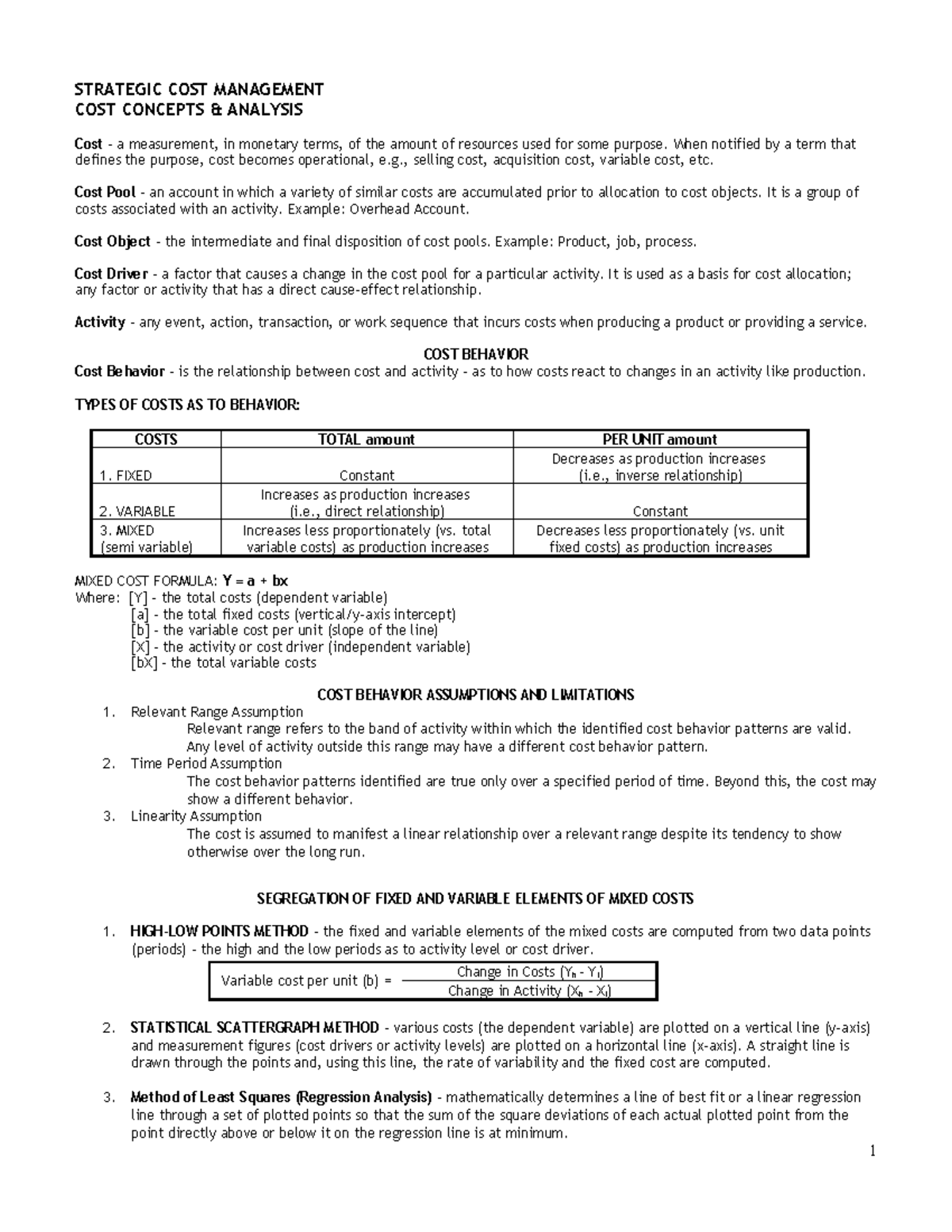 Lecture 2: Cost Concepts & Analysis (STRATEGIC COST MANAGEMENT) - Studocu
